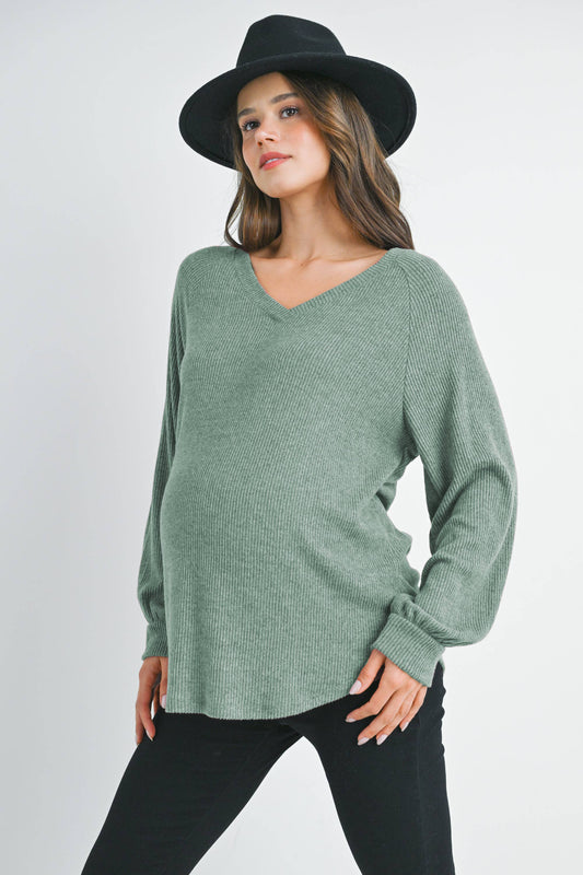 Ribbed V-Neck Long Sleeve Maternity Top