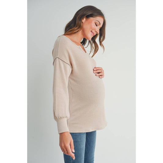 Split Neck Long Sleeve Maternity Knit Top